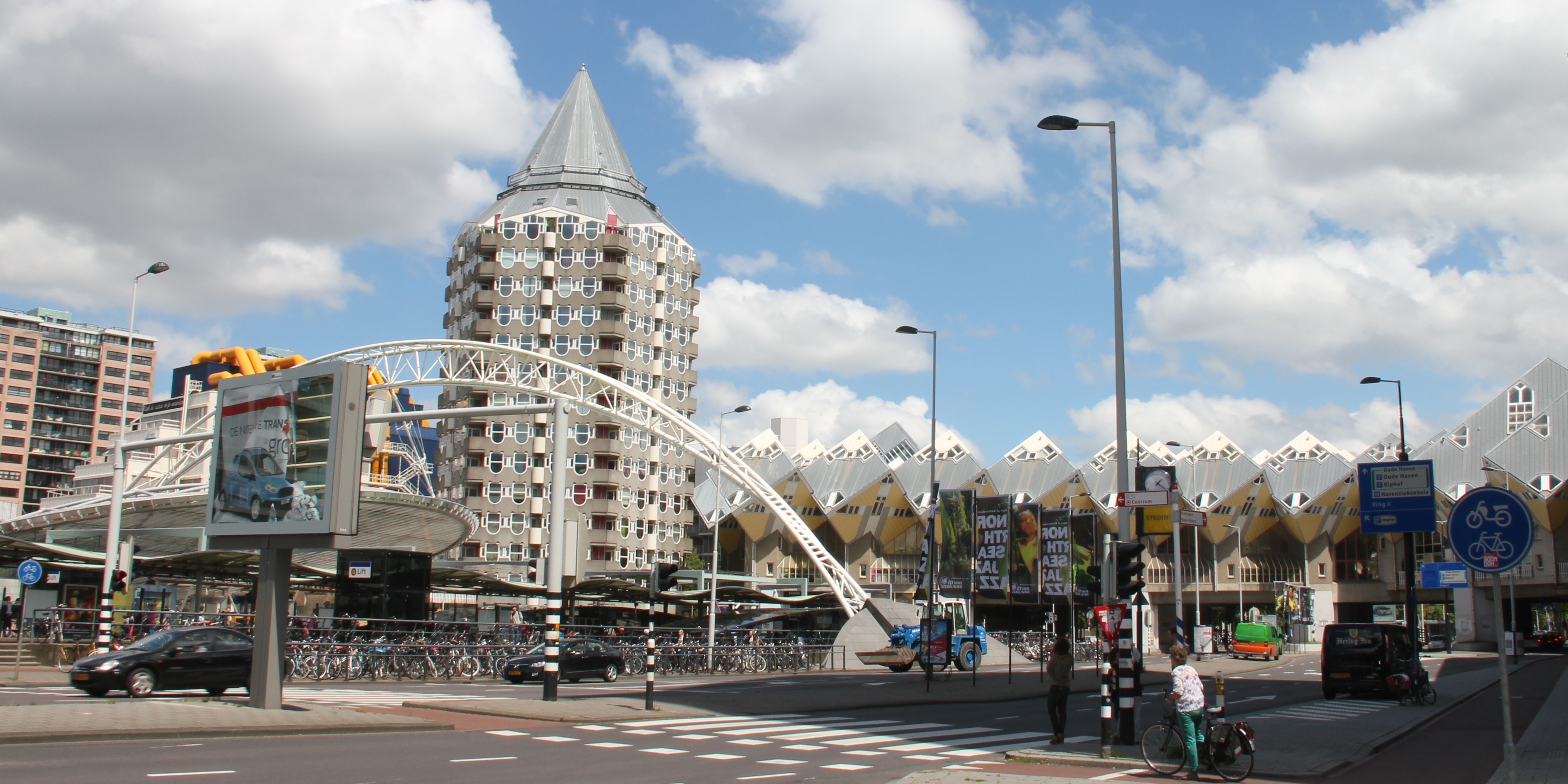 Vi ledte længe efter bymidten, før vi fandt ud af, at den havde tyskerne fjernet i 1940. Bombede og udraderede 25.000 bygninger i det centrale Rotterdam. Rotterdammerne har bygget det op igen efter en ny plan, og arkitekterne har fået lov at spille med musklerne.