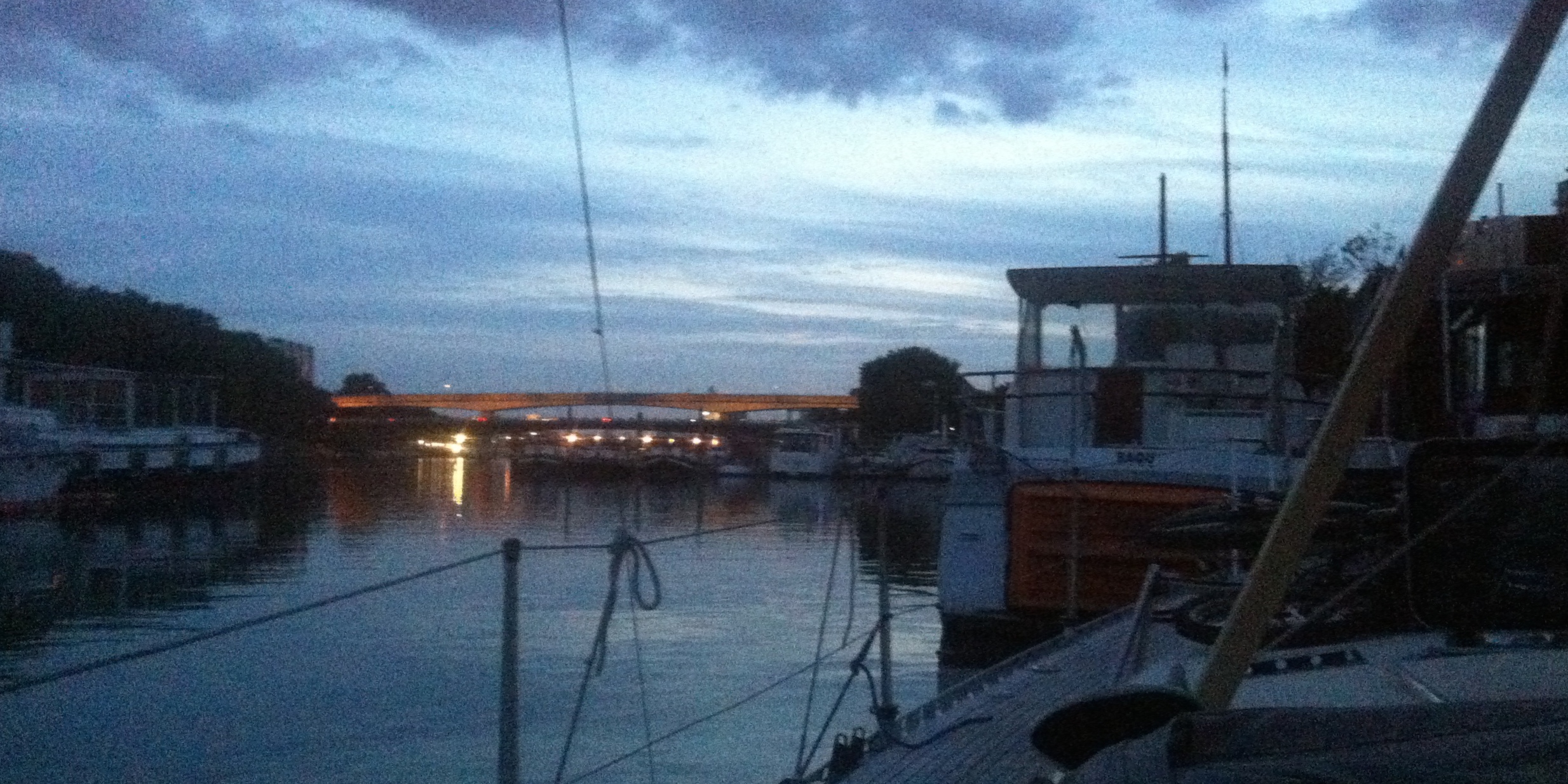 Tredje gang var lykkens gang, og vi fik fortøjet uden på en ubeboet båd, men vi forlod ikke ”Bare Lykke”, og Vitter skulle dulmes med et par store calvados’er, før der var ro på. I nattens løb blev vi i øvrigt kun invaderet af en kat!