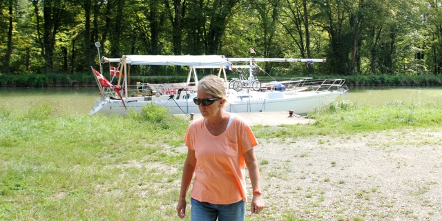 Sluser åbnes og lukkes, fyldes og tømmes, vi løftes eller sænkes typisk 3-4 meter ad gangen, de 8-9 kilometer i timen skubber os fremad, og lige pludseligt er det sidst på dagen og vi finder et sted at stoppe.