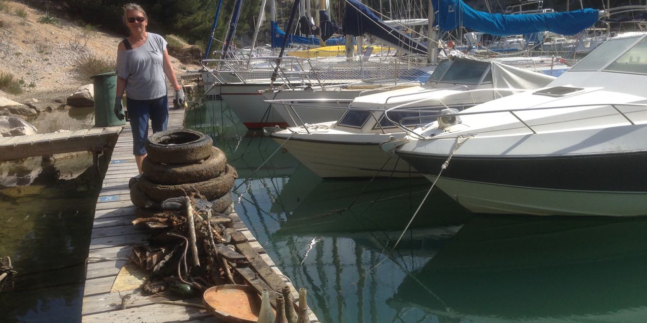 Målet var at få ryddet skidt og skrald fra hele havnen. og de mente hele havnen. Mens vi og ca 100 andre ryddede hele landområdet for affald, så ryddede ca. 80 dykkere havnebunden. Imponerende, de går noget op i vandkvalitet hernede, og Port Miou ligger jo lige midt i en naturpark.