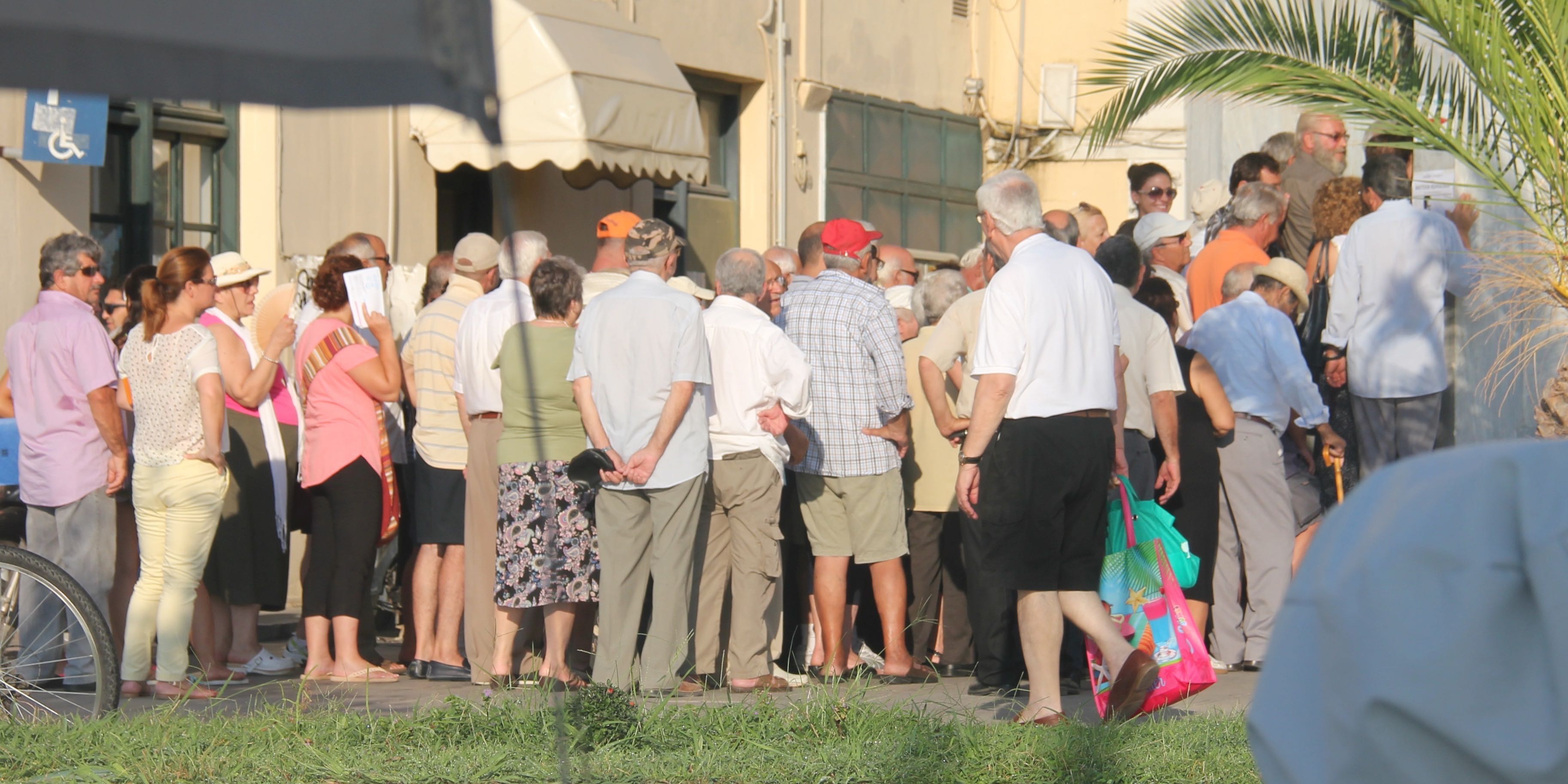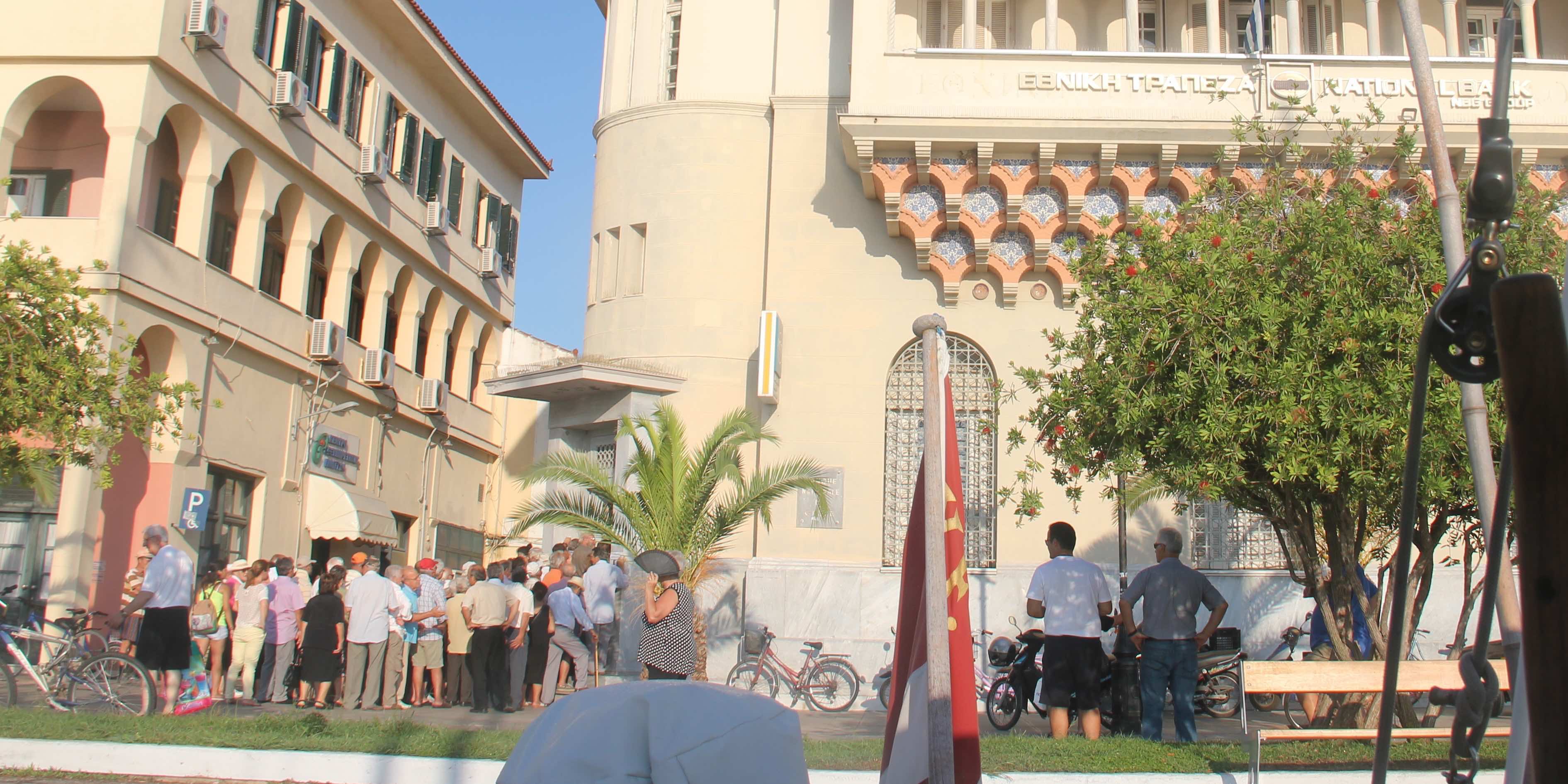 Christo havde været i Kefalonias hovedby, Argistoli (25.000 indbyggere), den dag vi ankom. Han skulle i banken. ”Hvis man kommer for sent er det umuligt”, så han mødte op ved banken kl. 7, en time før åbningstid og efter tre kvarters kørsel den morgen. Køen var lang, 135 mennesker, og da banken lukkede for middagsheden ved 12.30 tiden, og han havde han stået i over fem timer i heden (over 30 grader), var det ikke blevet hans tur endnu, da var der 250 i køen. Han fik skabt kontakt til noget bankpersonale og gjorde opmærksom på, at han faktisk ville sætte penge ind i banken, modsat den langt overvejende del, der kom for at hæve deres max. 60€ dagligt. Det lykkedes ham så alligevel at komme af med sine penge, inden han vendte snuden hjemad. ”Jeg betragter EU-landene som vore brødre, men behandler man brødre på den måde?”