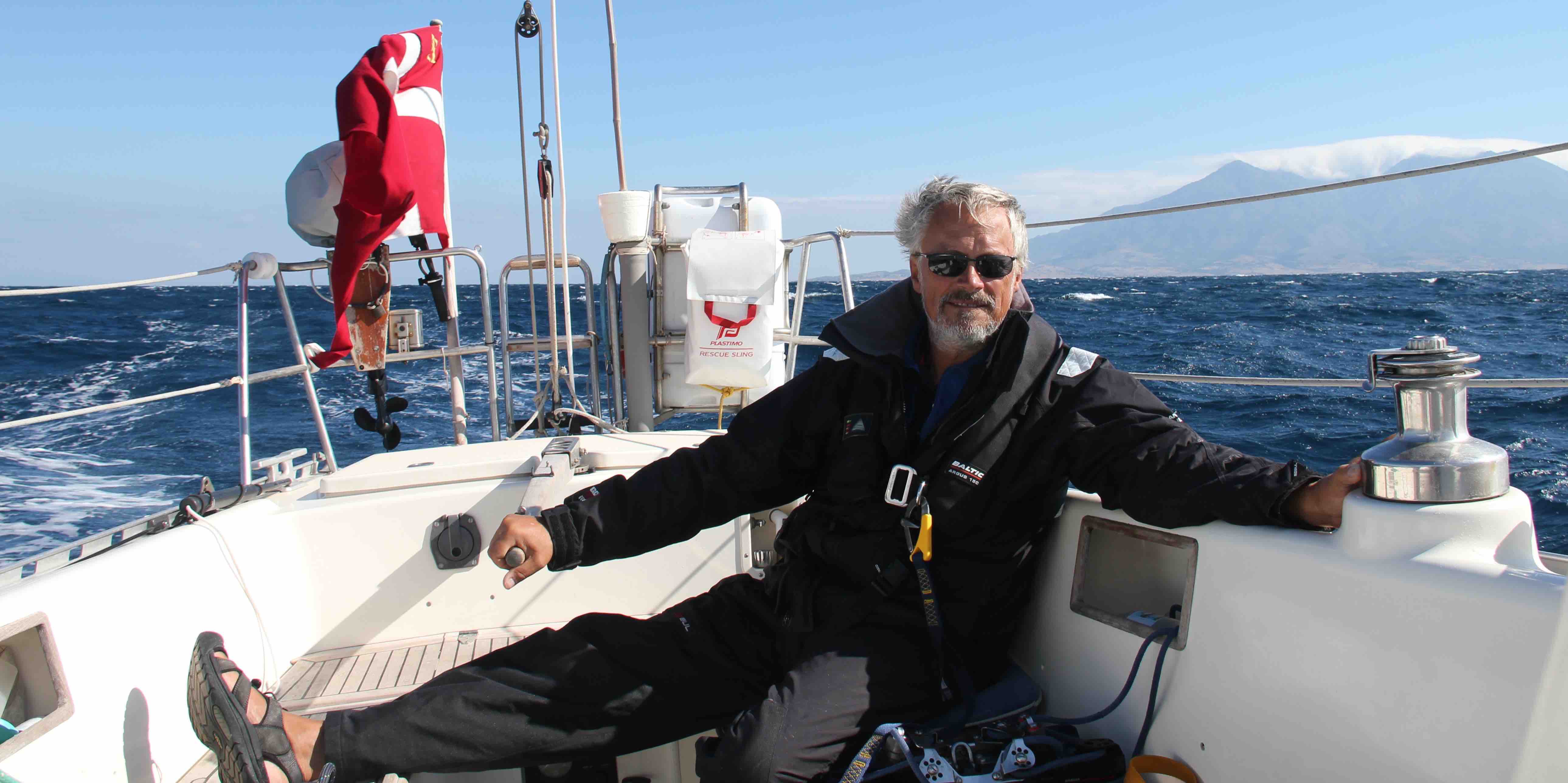 Frisk vind over Nordlige Ægæerhav på vej mod Samothraki sammen med Karin og Jørgen. (Horisonten er ikke redigeret!).