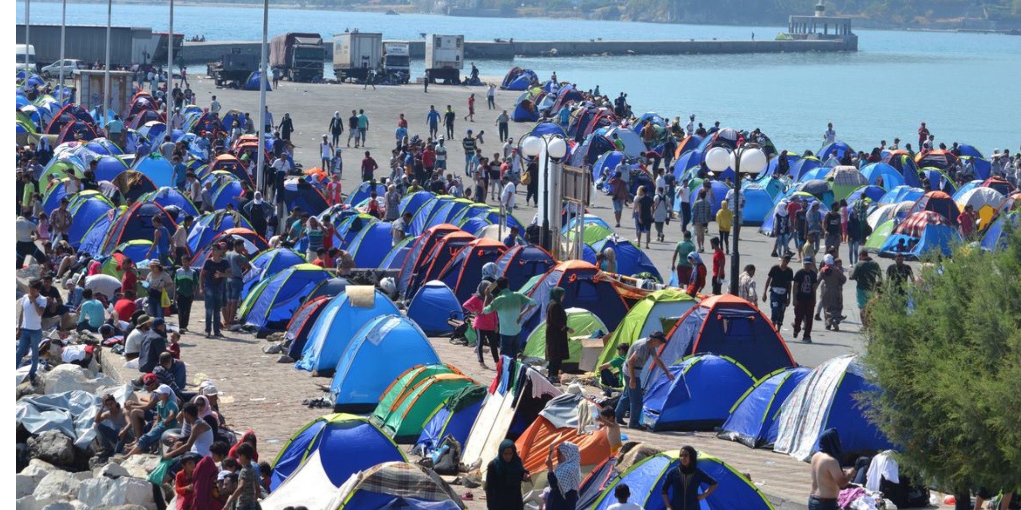 Lesbos er porten til Europa. Der kommer ca. 1.000 flygtninge hver dag i gennemsnit. Der er nogle enkelte landgange her i området (Vestlesbos). De allefleste kommer til den nordlige kyst, hvor der er kortest afstand til Tyrkiet, men også ned langs den østlige kyst.