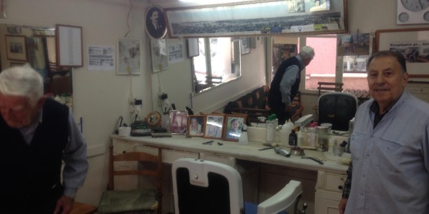 Måske lever nogle grækere af at klippe hinanden? Jeg kastede 10€ og min hår- og skægpragt ind i den ca. 75-åriges salon og afbrød den lokale mandeklubs daglige konstatering af verdenssituationen. Nu er jeg sommerklippet og den gamle frisør 10€ rigere.