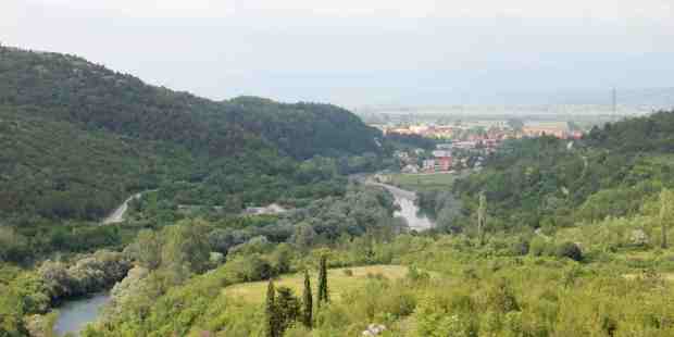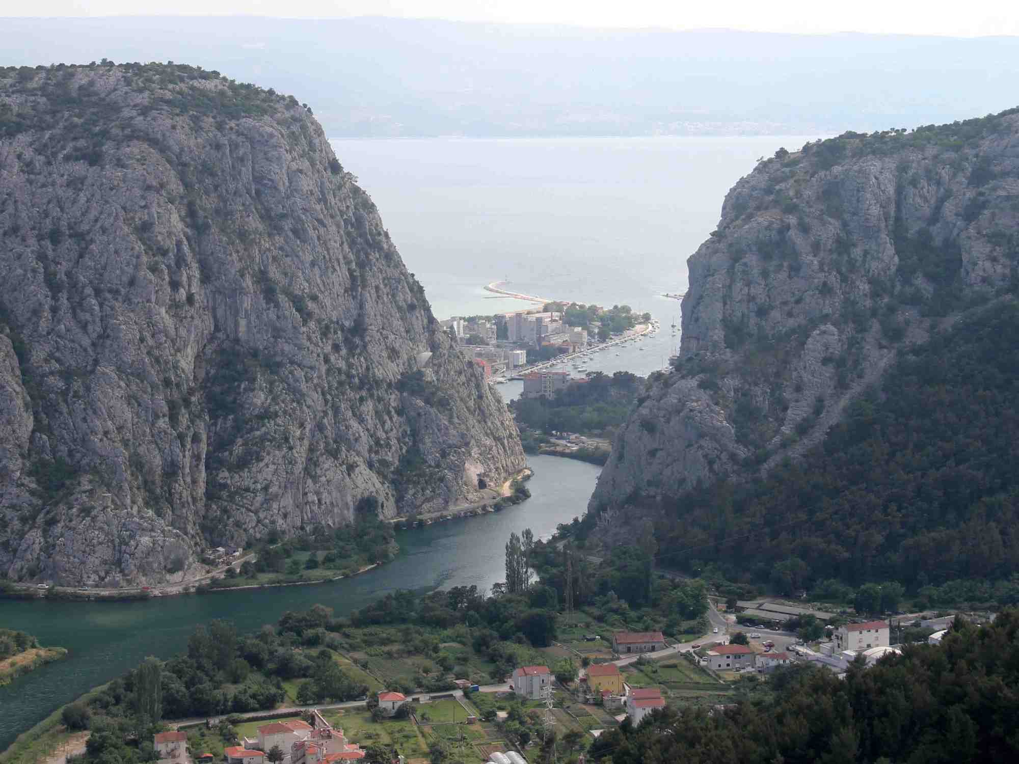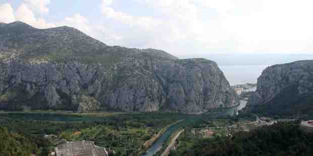 Floden Cetina afvander sletter og bjerge, og eroderinger har efterladt voldsomt imponerende landskaber, som her ved Omis, hvor floden skærer sig helt ud til kysten gennem Moser bjergene.
